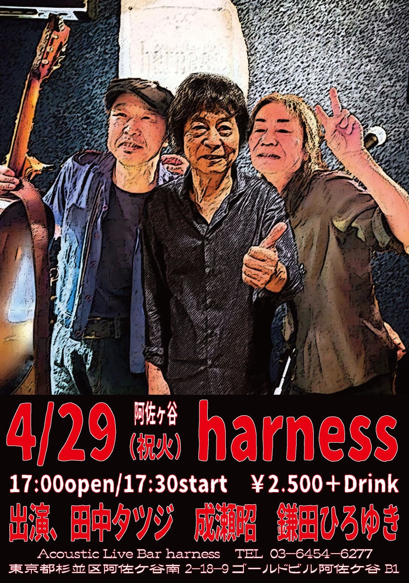 | ★12/25(木) 阿佐ヶ谷 harness act ミノルBグッド、成瀬昭 open 19:00 / start 19:30 charge ¥2,000+オーダー 【harness】 03-6454-6277 杉並区阿佐谷南2-18-9 ゴールドビル阿佐ヶ谷B1F |