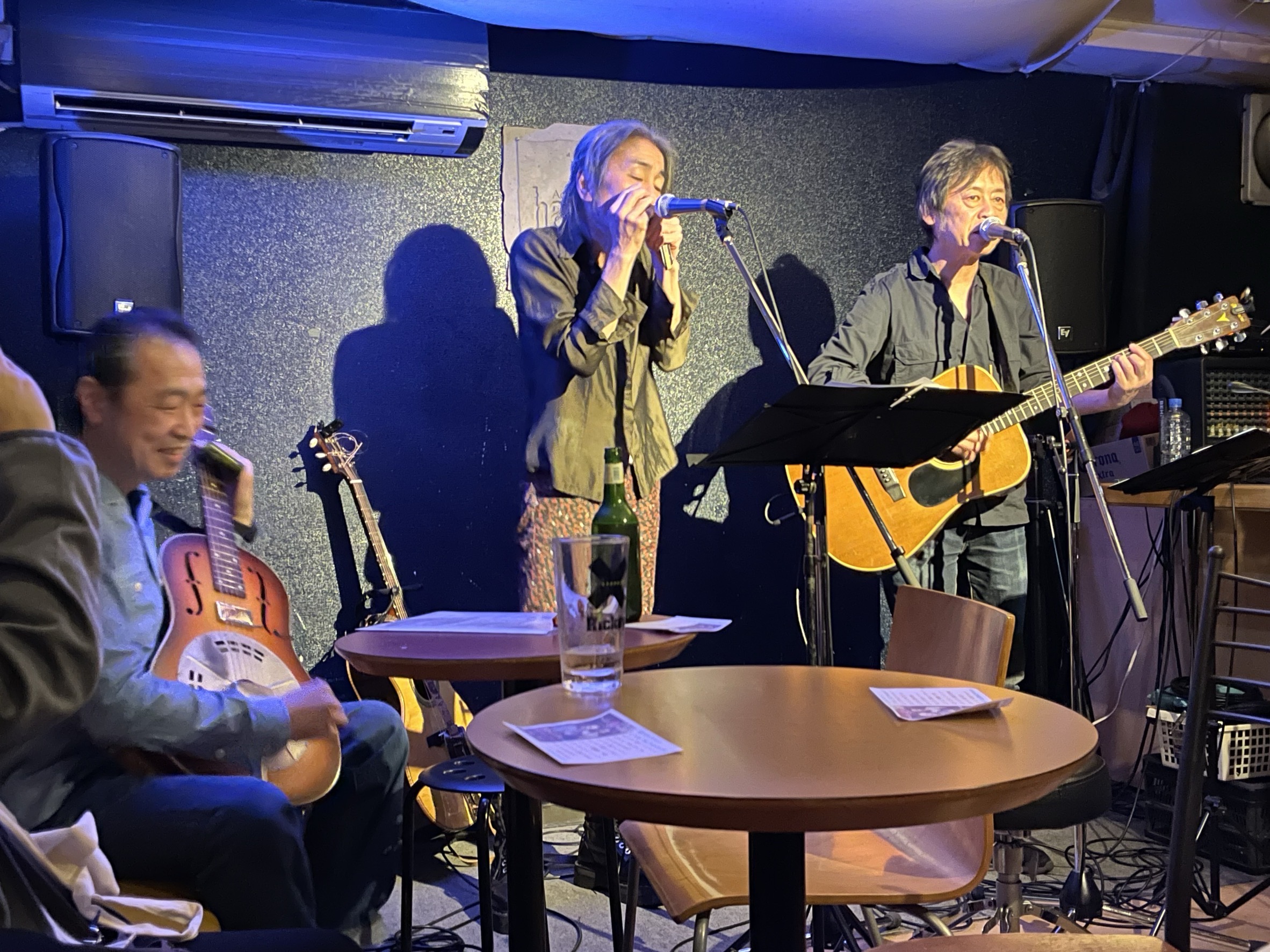 | ★11/14(金) 阿佐ヶ谷 harness act 鎌田ひろゆき、田中タツジ、成瀬昭 open 19:00 / start 19:30 charge ¥2,500+オーダー 【harness】 03-6454-6277 杉並区阿佐谷南2-18-9 ゴールドビル阿佐ヶ谷B1F ー 終了、ありがとうございました!ー 01. さみしいのかな 02. 新しいメロディーの下で 03. 会いたいという気持ち 04. 流図 05. 揺ら揺ら 06. 十字路の歌 07. ハレルヤ! 08. 風が吹いてる 09. 夢のある風景 EN. キャラバン(カヴァー:鎌田ひろゆき w/ 鎌田ひろゆき、田中タツジ) |