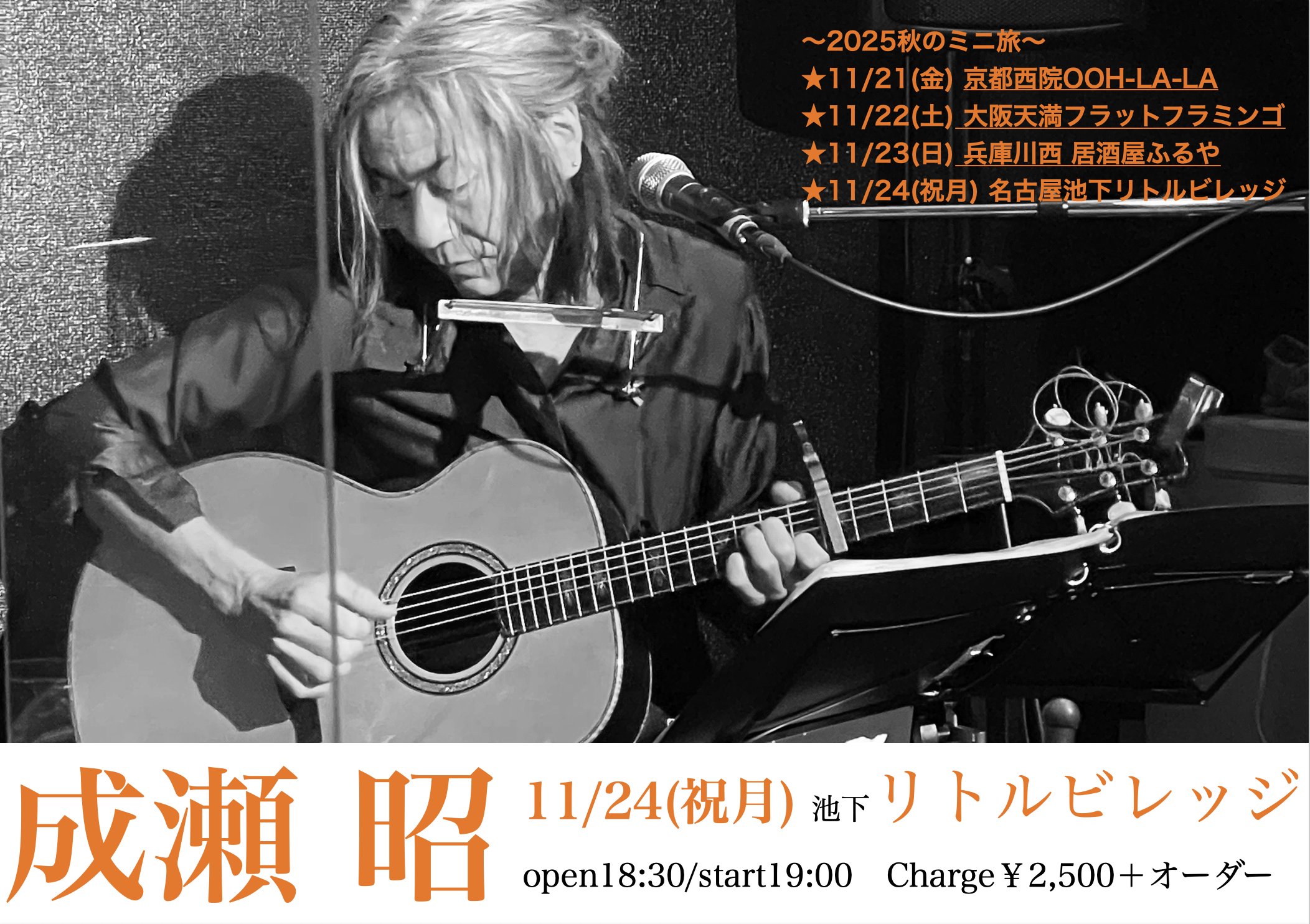 | ★11/24(祝月) 名古屋池下リトルビレッジ act 成瀬昭 open 18:30 / start 19:00 charge ¥2,500+オーダー 【リトルビレッジ】 052-753-0002 名古屋市千種区向陽1-12-20 池下アミティ2F ![]() |